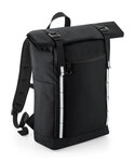 Low-profile streamlined design. Weather-resistant roll-top closure. Glove-friendly metal buckles. Quick-access zipped front pocket. Two external bottle pockets. Padded internal laptop sleeve, compatible up to 15.6'. Enhanced-visibility reflective stripes. Ergonomic, breathable padded mesh back panel. Ergonomically designed straps for everyday comfort. Fully adjustable chest strap. Durable, water-repellent treatment for increased weather protection. PVC-Free. TearAway label for ease of rebranding. Reach certified.